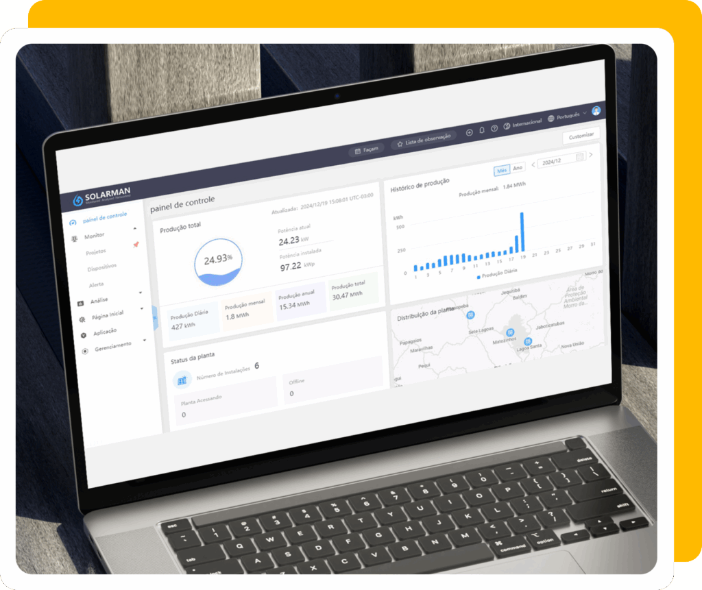 O monitoramento eficiente de uma usina é fundamental para garantir o desempenho ideal e a longevidade do sistema. Ele envolve uma análise constante de estatísticas operacionais que ajuda a identificar problemas, ações corretivas planejadas e melhorias na geração de energia.